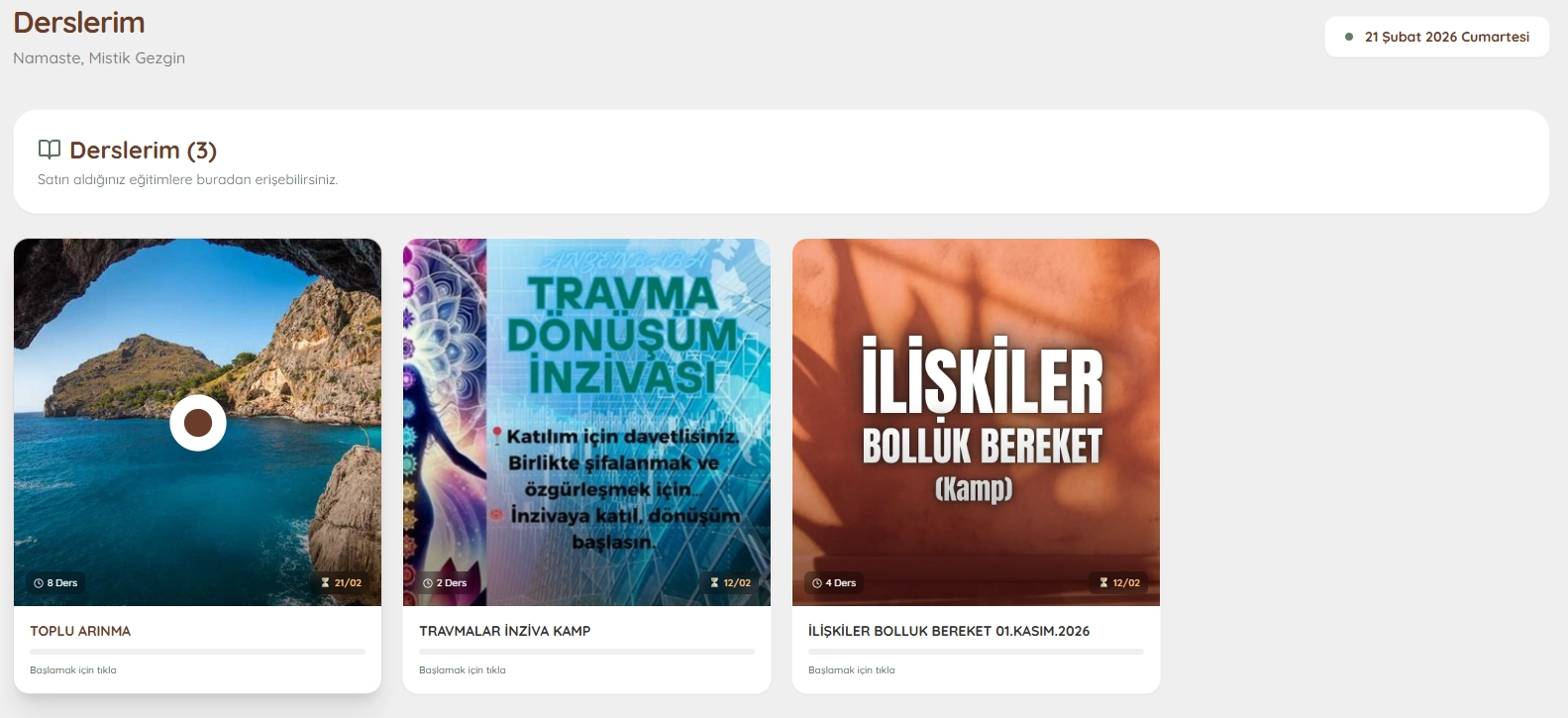 Derslerim: Satın aldığın veya kayıt olduğun aktif eğitim videolarına ve içeriklerine erişebileceğin bölüm.